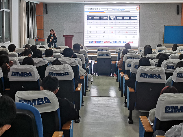 宣讲老师对毕业生报考本校研究生的鼓励政策做了详细解读,对国内统招国际商务专业硕士、国际贸易学学术硕士和英国项目管理、房地产理学硕士等专业做了系统介绍,对学院研究生培养国际化的培养方案、导师团队、海外基地、国际交流等培养条件做出了充分讲解,对研究生取得的国家级、省部级等各类奖励和成果做了分别展示,对本校考生报考优势和近三年的本校考生录取情况做了细致分析,提出了“上岸”和“接盘”的双层报考策略和用好少数民族政策的建议。为了进一步激发学生的考研热情和动力,国际工商学院还开设了一系列专题讲座。