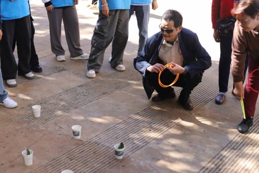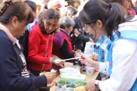 学院青年志愿者协会的工作人员带领同学们从学校出发前往幸福家园社区,到达目的地后,同学们很快开始分工合作,有条不紊地开始布置场地,摆放好提前准备的食材和奖品后,志愿者们邀请老人们来到活动场地进行套圈游戏,并品尝同学们精心煮的面条。考虑到爷爷奶奶腿脚不便的情况,同学们摆放了座椅供老人们休息并煮好面条后送到他们的手上,同时陪伴老人们聊天,了解老人们的生活日常以及他们的诉求。本次启动仪不但实现了同学们给老人送去幸福和温暖这一活动的目的,还让学子们感受到了作为志愿者的意义。