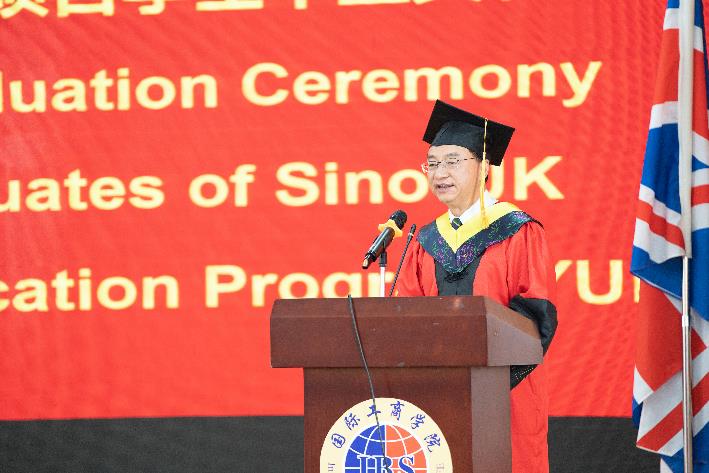 王荣党院长代表学院向毕业生致以热烈的祝贺,期望他们充分利用国际化教育这条纽带,加强母校与世界的联系;愿他们怀揣信念,蓄积力量,踔厉奋发,努力拼搏,在未来的道路上书写更加灿烂的人生。