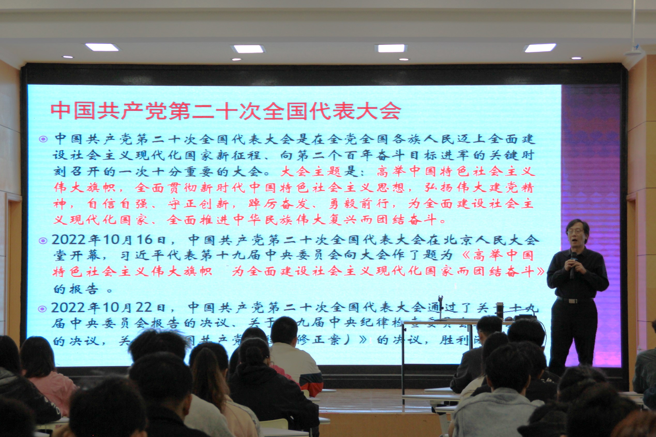 林浩从党的二十大主题中蕴含的丰富内涵、中国发展奋进的基础、中国发展奋进的主要任务目标、中国发展奋进的开放之路、战略机遇和风险挑战并存的战略环境等方面作了系统宣讲和深入阐释。他强调,青年学子在见证伟大变革,感悟辉煌成就的同时,应该增长知识本领,勇于突破创新,矢志拼搏奋斗,担当时代重任。
