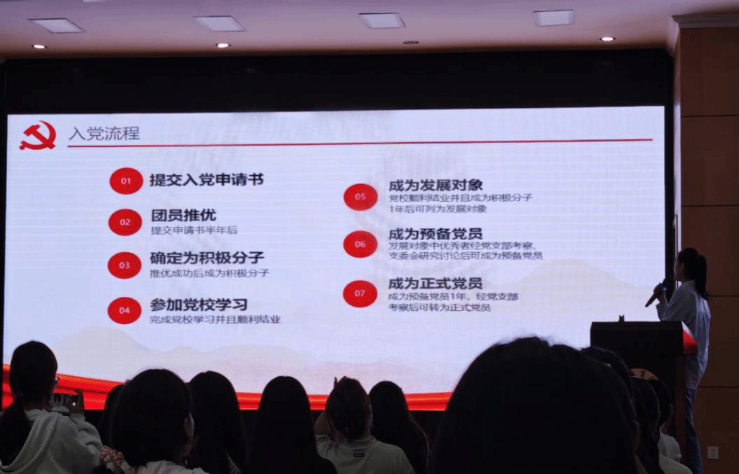 9月22日,本科生党支部相继开展启蒙教育宣讲。各支部于国报厅聚焦“党的百年征程与时代价值”,从历史维度阐释“党是历史和人民的必然选择”,呼吁新生加强理论学习、端正入党动机,并展示了支部党建创新成果。同时,以“发展党员工作程序”为主题,从“什么是中国共产党”切入,带领新生集体诵读入党誓词,系统讲解了“申请入党到预备党员转正”的5个阶段25个步骤,结合《中国共产党章程》明确入党基本条件,并重点讲解了入党申请书撰写规范。