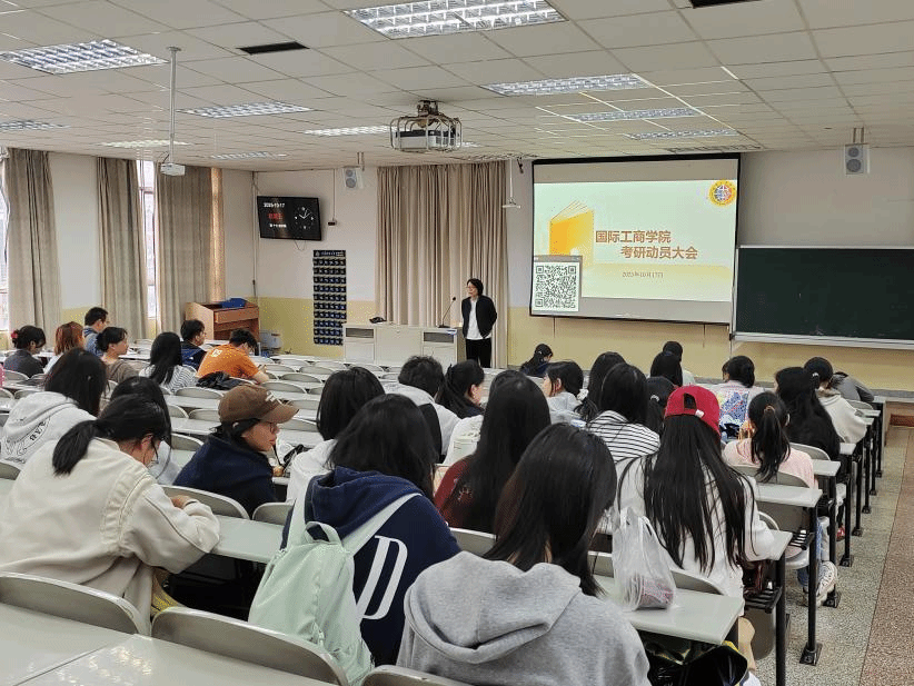 为全面推进考研工作,提升人才培养质量,营造积极向上的学风氛围,引导学生科学规划学业发展,2025年10月19-20日,国际工商学院副院长张俊婕、刘丽芳,党委副书记王晶分别深入2026届本科生班级,面向会计学、金融学、国际经济与贸易三个专业的学生开展考研报考指导宣讲与动员。