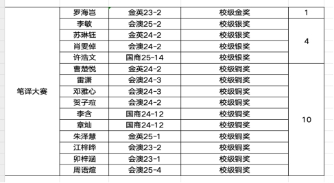 这些成绩的获得,一方面证明了学院多年来的教育成果和专业优势已经吸引了更高质量的生源,另一方面也表明学院在中外合作办学方面,对教育质量和人才培养质量的严格把控已经取得了显著成效。在接下来的工作中,学院将继续秉承“以赛育人、以赛促教、以赛促学、以赛促用”的理念,在更广阔的平台上为学生们提供学习英语、提高英语能力、灵活运用英语的机会,以推动我院教育教学和人才培养质量的持续进步。