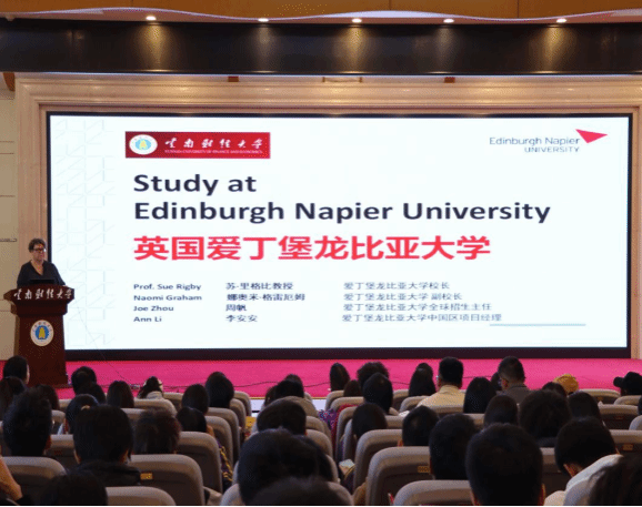 访问我校期间,苏·里格比校长还出席了学校2025级中英合作本科金融学专业的新生见面会。她向新同学致以热烈欢迎,鼓励大家充分利用两校优质教育资源与合作平台,主动拓展国际视野、锤炼跨文化交流能力。同时,龙比亚大学相关项目负责老师李安安面向2023、2024级学生开展留学专题宣讲,详细解读了赴爱丁堡龙比亚大学深造的申请路径、政策支持等内容,为同学们搭建起国际化深造的沟通桥梁。
