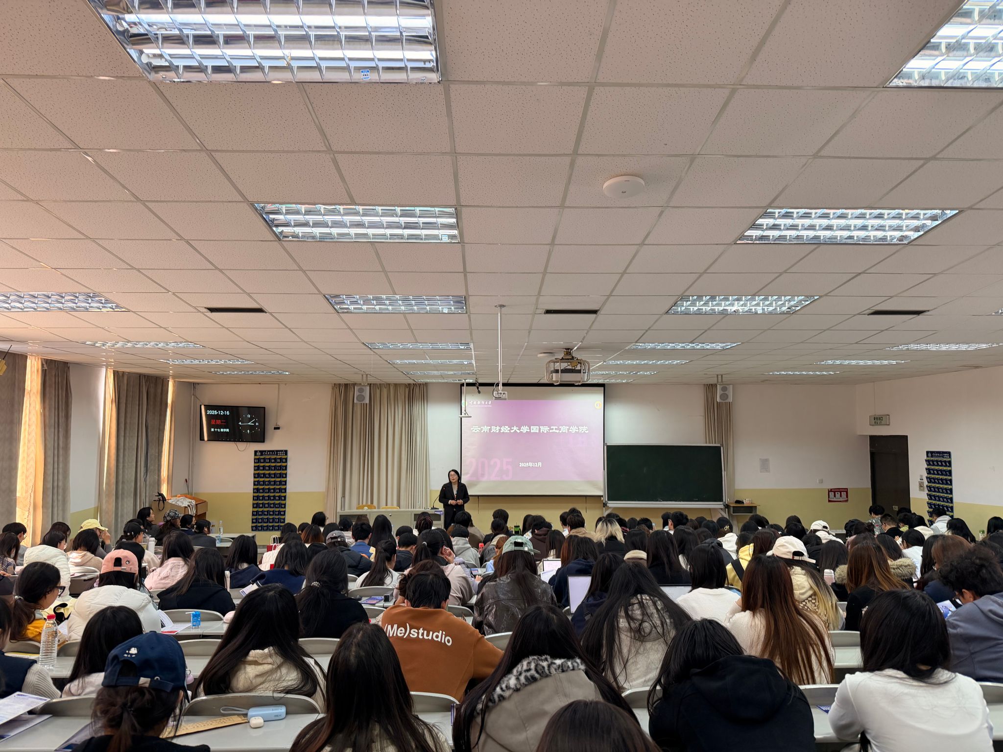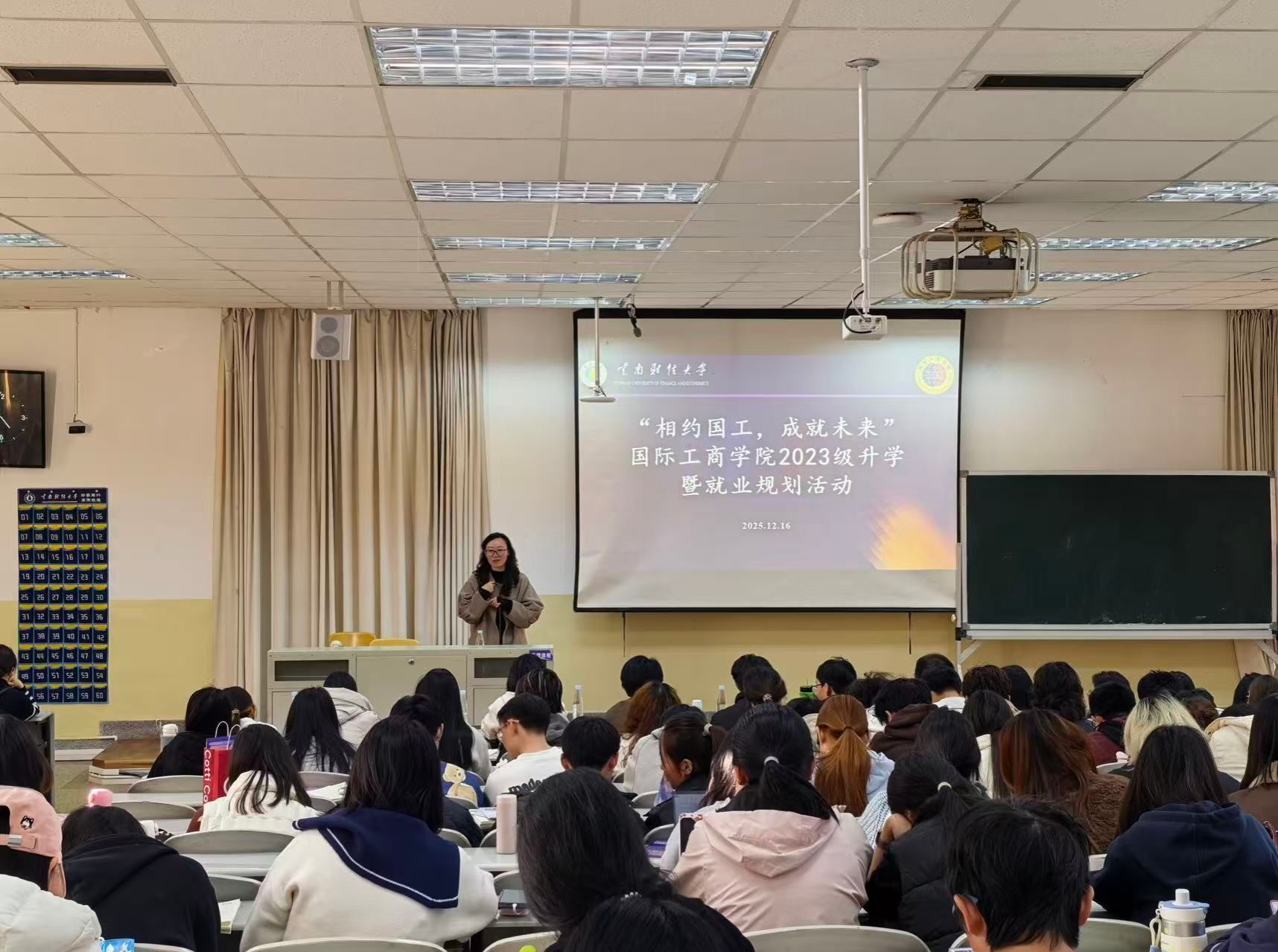 为帮助2023级学生科学规划学业与职业发展,明确升学、就业、出国等多条发展路径。2025年12月16日(星期二)15:00,国际工商学院在凌云楼南附301教室举办“相约国工,成就未来——2023级升学暨就业规划”活动。学院领导、相关科室老师、2023级班主任及全体学生共同参与。