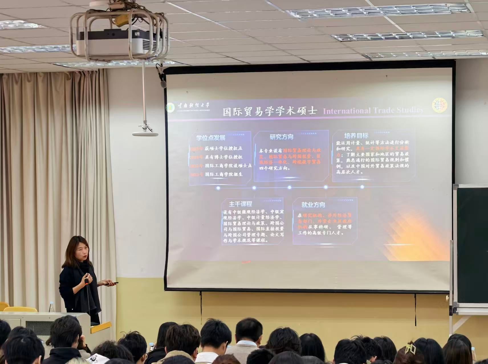 本次活动围绕“早规划、明方向、强行动”为主线,议程紧凑、内容务实。首先,学院分管本科教学副院长张俊婕进行学院整体情况,并对国外合作院校及相关项目进行了系统解读,帮助同学们深入了解国际化培养路径与出国深造的多元选择。随后,学院分管研究生工作副院长刘丽芳围绕学院硕士研究生专业,从专业特色、培养方向与发展前景等方面进行介绍,进一步加深同学们对研究生阶段学习目标与能力要求的理解。