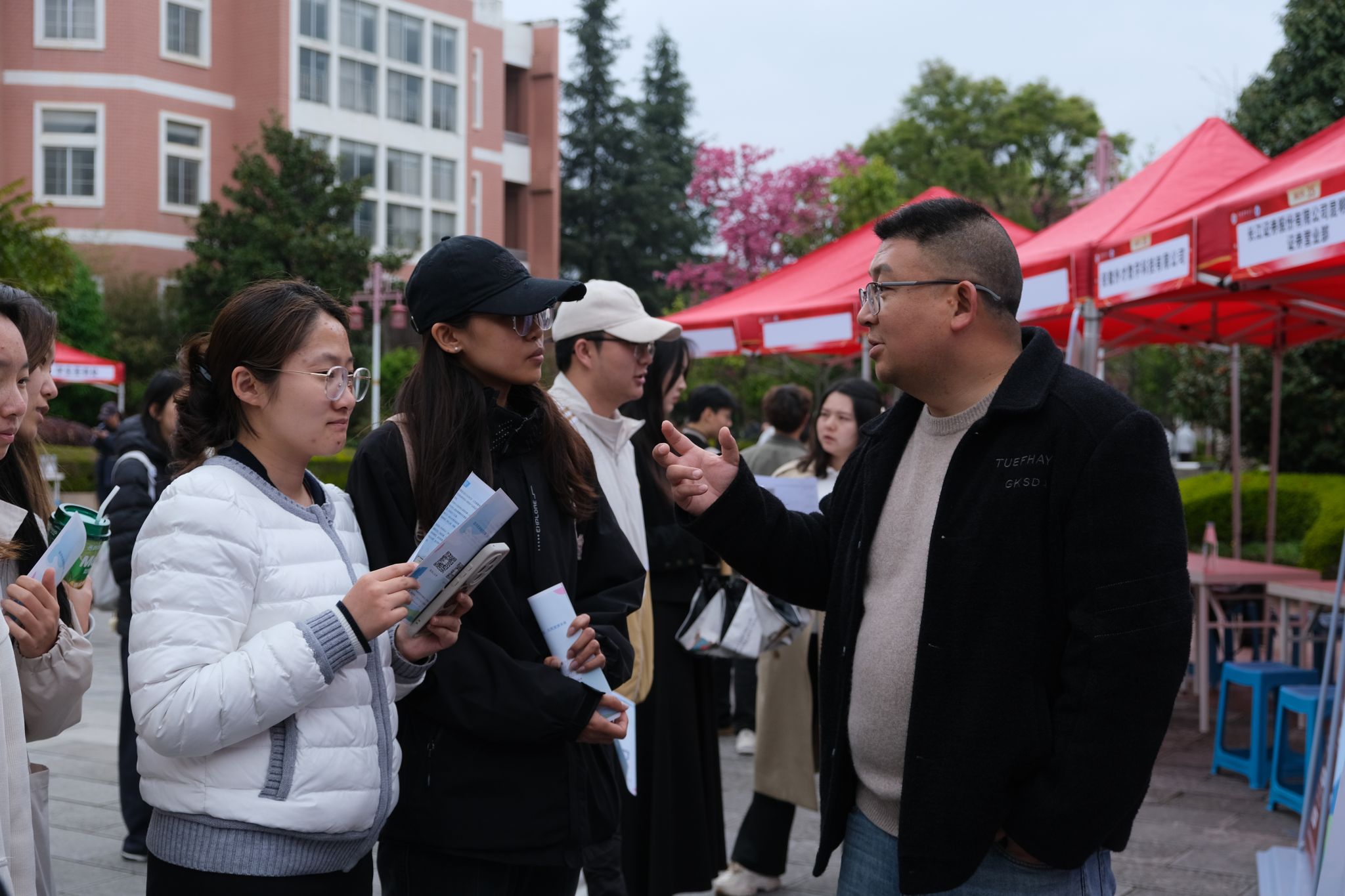 为深入落实就业优先战略,全力促进2026届毕业生高质量充分就业,3月13日下午,国际工商学院在南院图书馆前举办周五“职”通车专场招聘会。本次活动精准对接毕业生求职需求,共吸引了包括中铝铝箔有限公司、招商银行股份有限公司、长江证券股份有限公司在内的36家优质企业进校揽才,累计提供就业岗位70余个,招聘需求达220人。