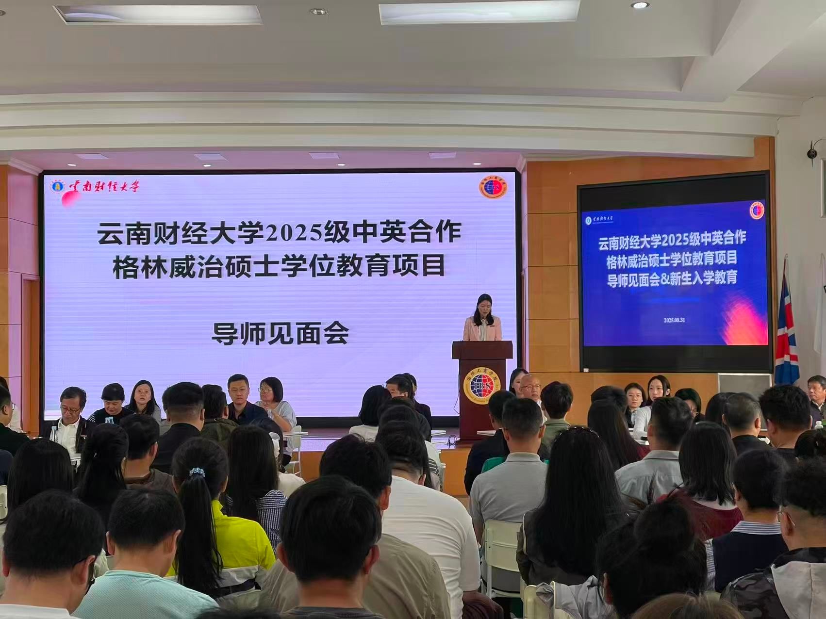 2025年8月31日上午,云南财经大学国际工商学院2025级中英合作格林威治硕士学位教育项目新生导师见面会与入学教育宣讲会在学院国际报告厅举行。学院院长张洪烈、党委书记林浩、副书记王晶、副院长尹豪、张俊婕、刘丽芳,项目导师、班主任及全体新生参加。会议由副院长刘丽芳主持。