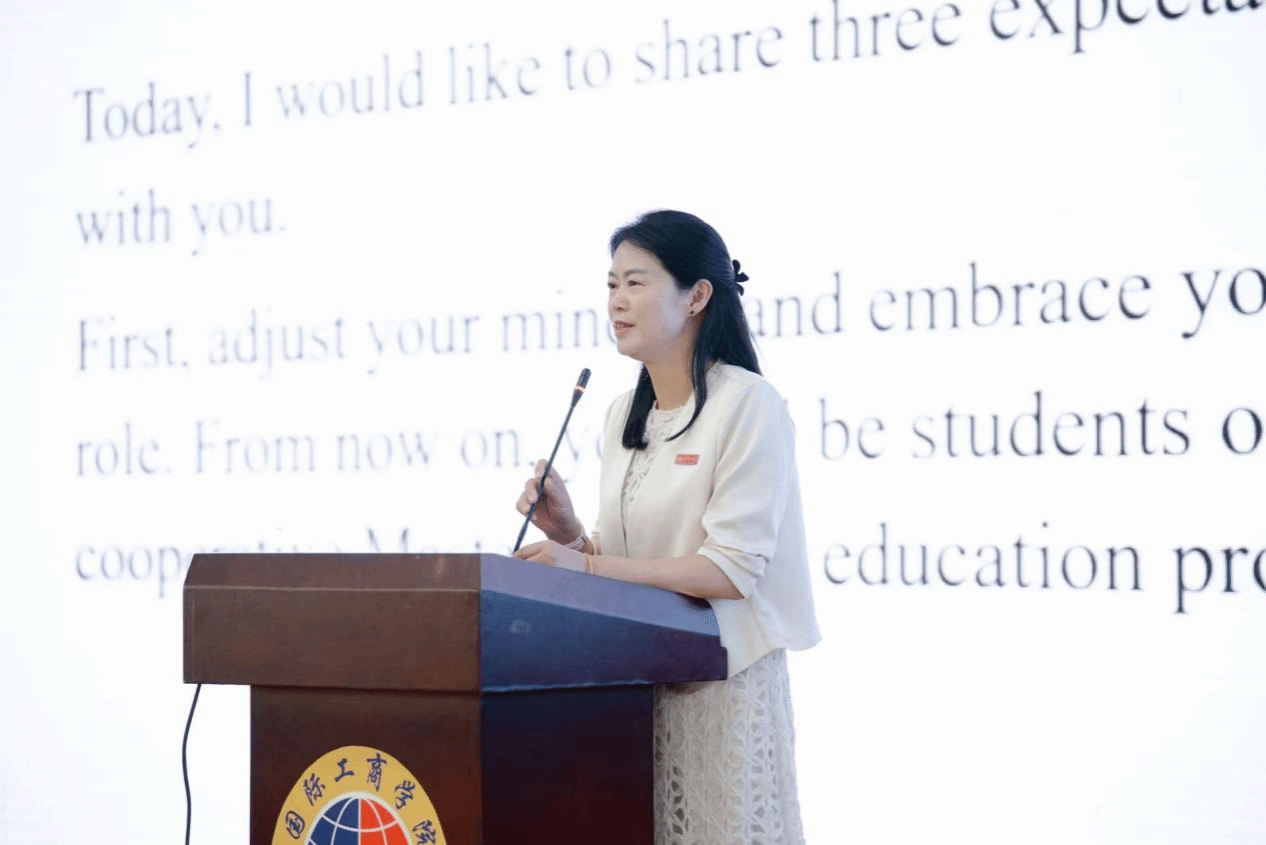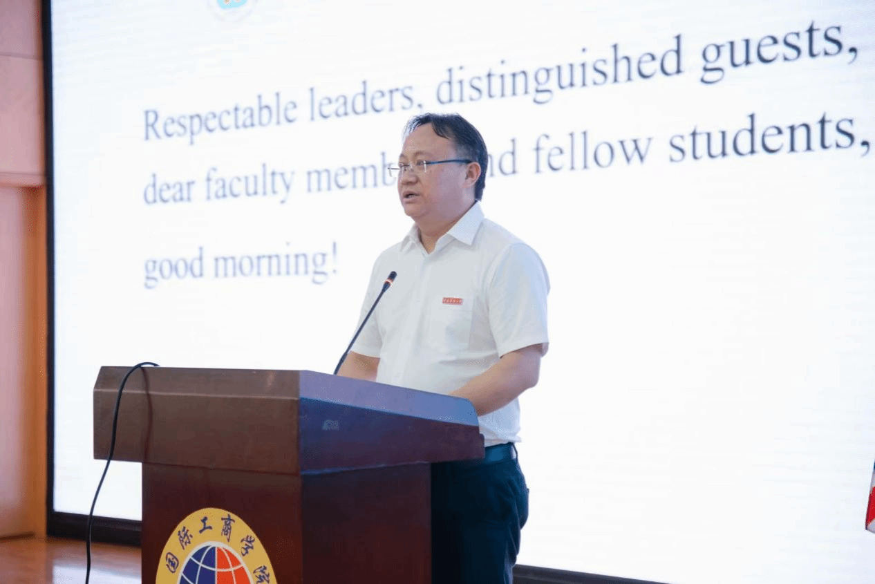 国际工商学院院长张洪烈向新生表示祝贺,并提出三点期望:一是调整心态、找准定位;二是坚定目标、学以致用;三是相互交流台、收获友谊,为同学们未来的学习与发展指明了清晰路径。