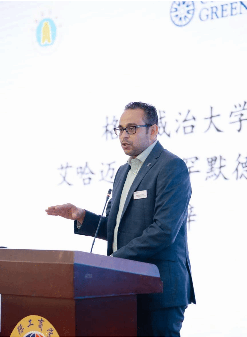 英国格林威治大学工程与科学学院艾哈迈德穆罕默德教授在发言中强调了硕士研究生阶段学习的重要意义,勉励同学们珍惜这一宝贵的学习机会,努力追求学术与职业上的新突破。