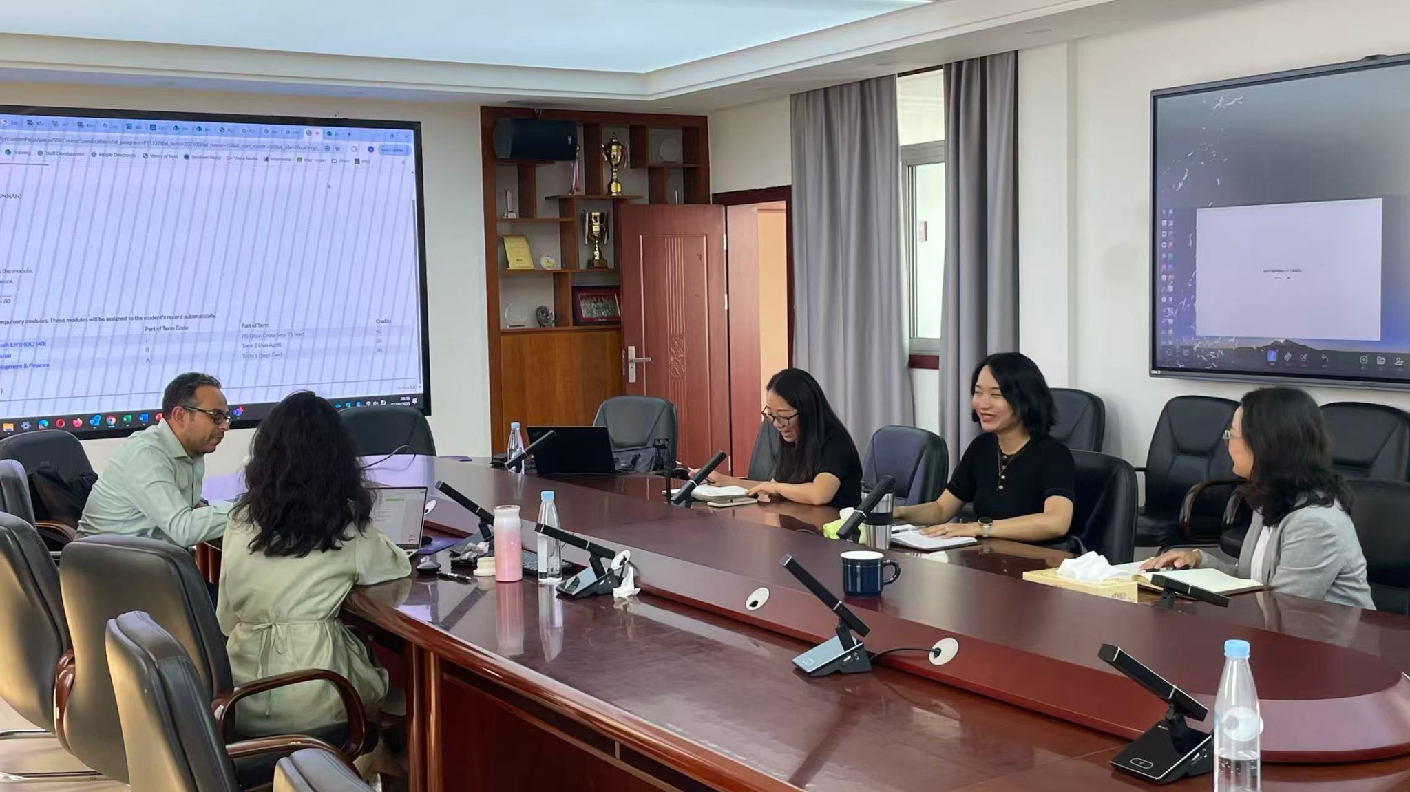 2025年9月2日下午,英国格林威治大学艾哈迈德・穆罕默德教授与国际工商学院研究生教育与管理科就就中英合作硕士教育项目教学管理展开深入交流。