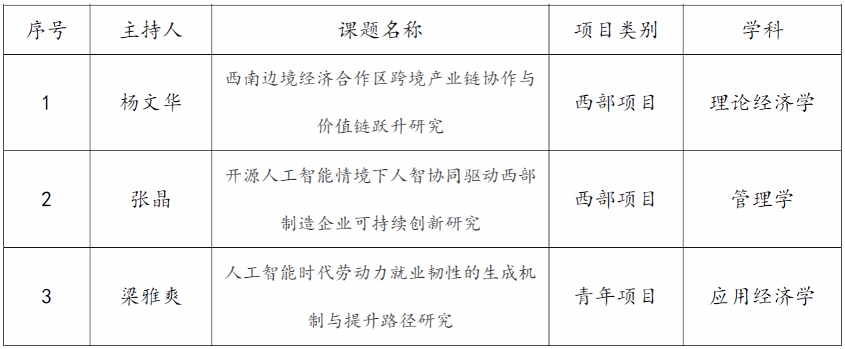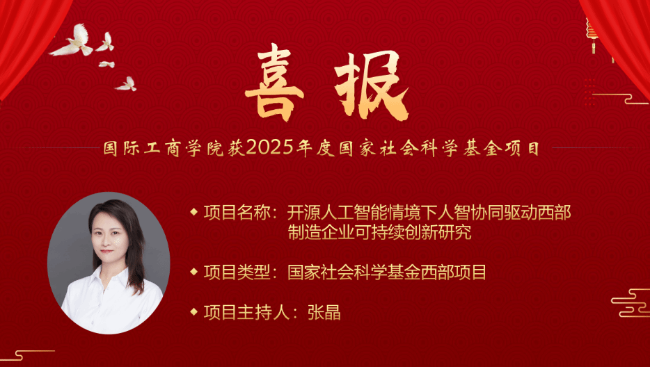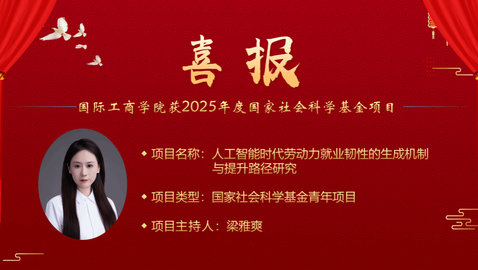 近日,2025年国家社会科学基金年度项目立项名单在全国哲学社会科学工作办公室正式公示,国际工商学院喜获3项立项,取得“十四五”期间国家社会科学基金立项的最好成绩,具体情况如下。